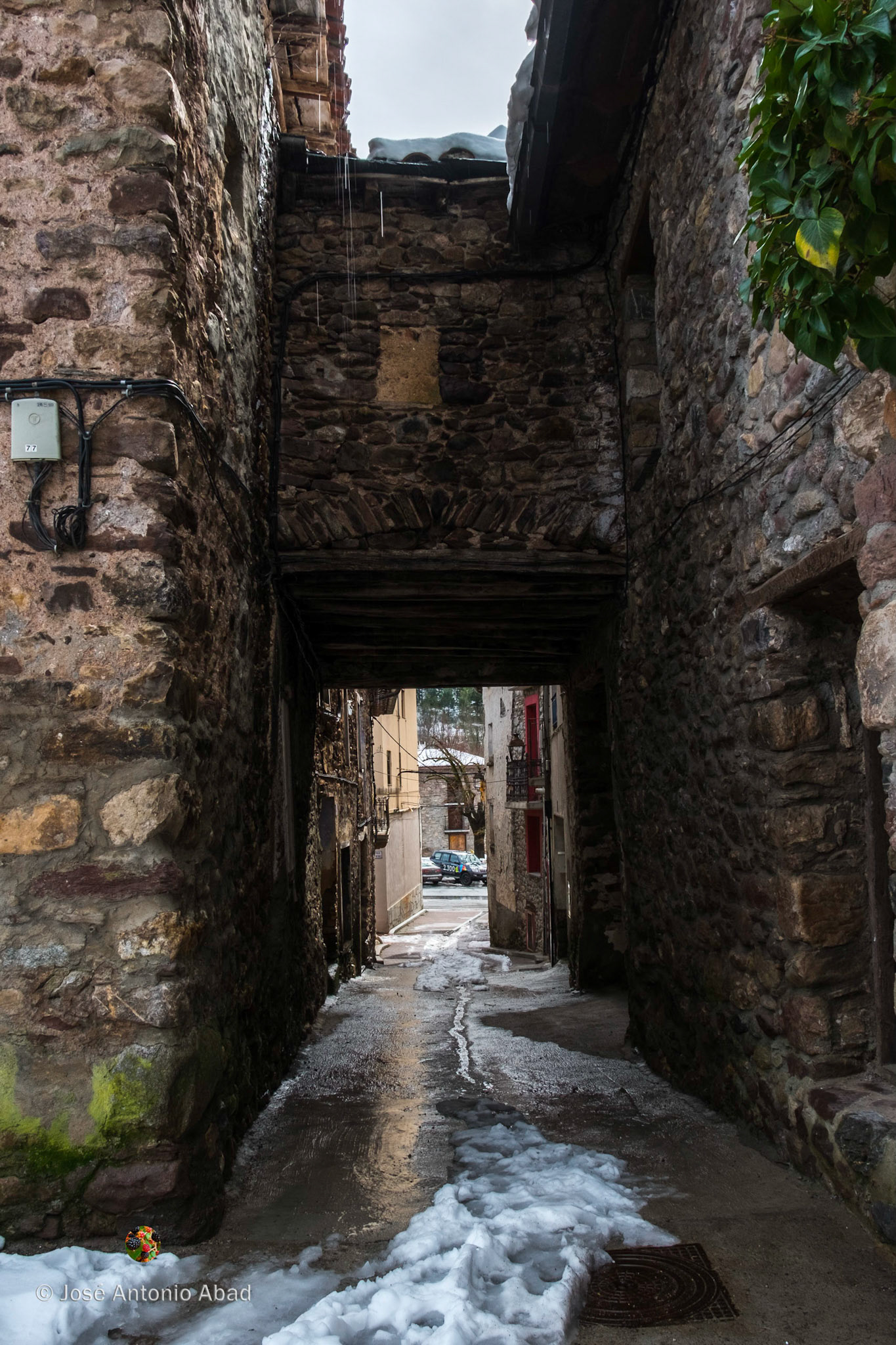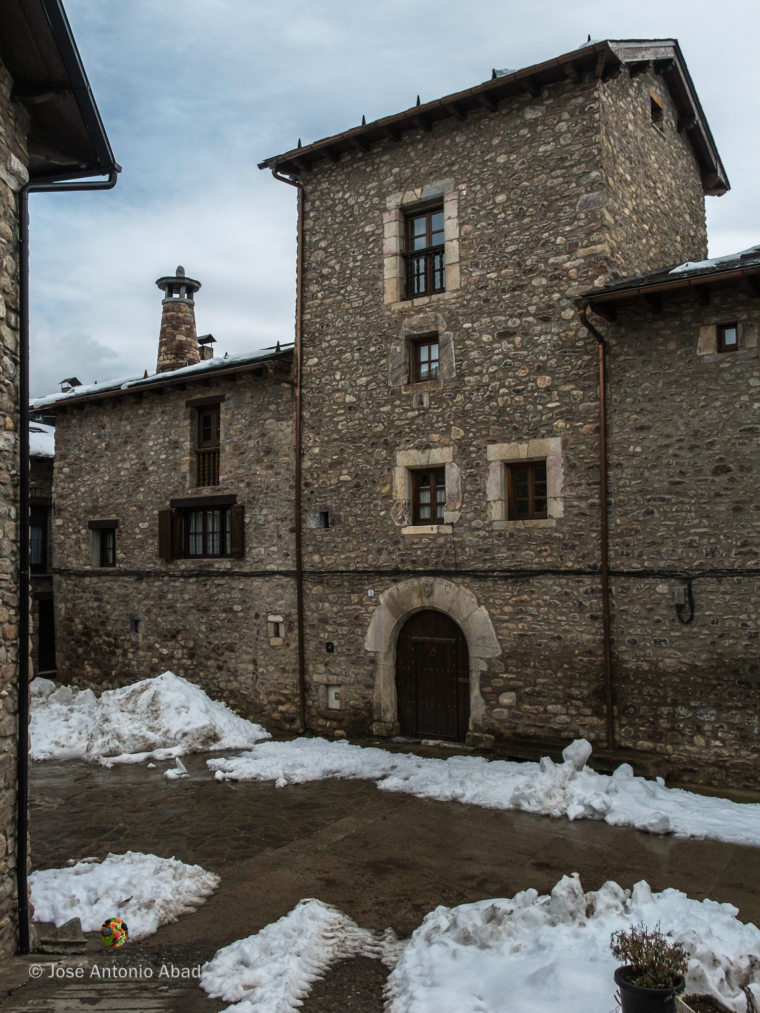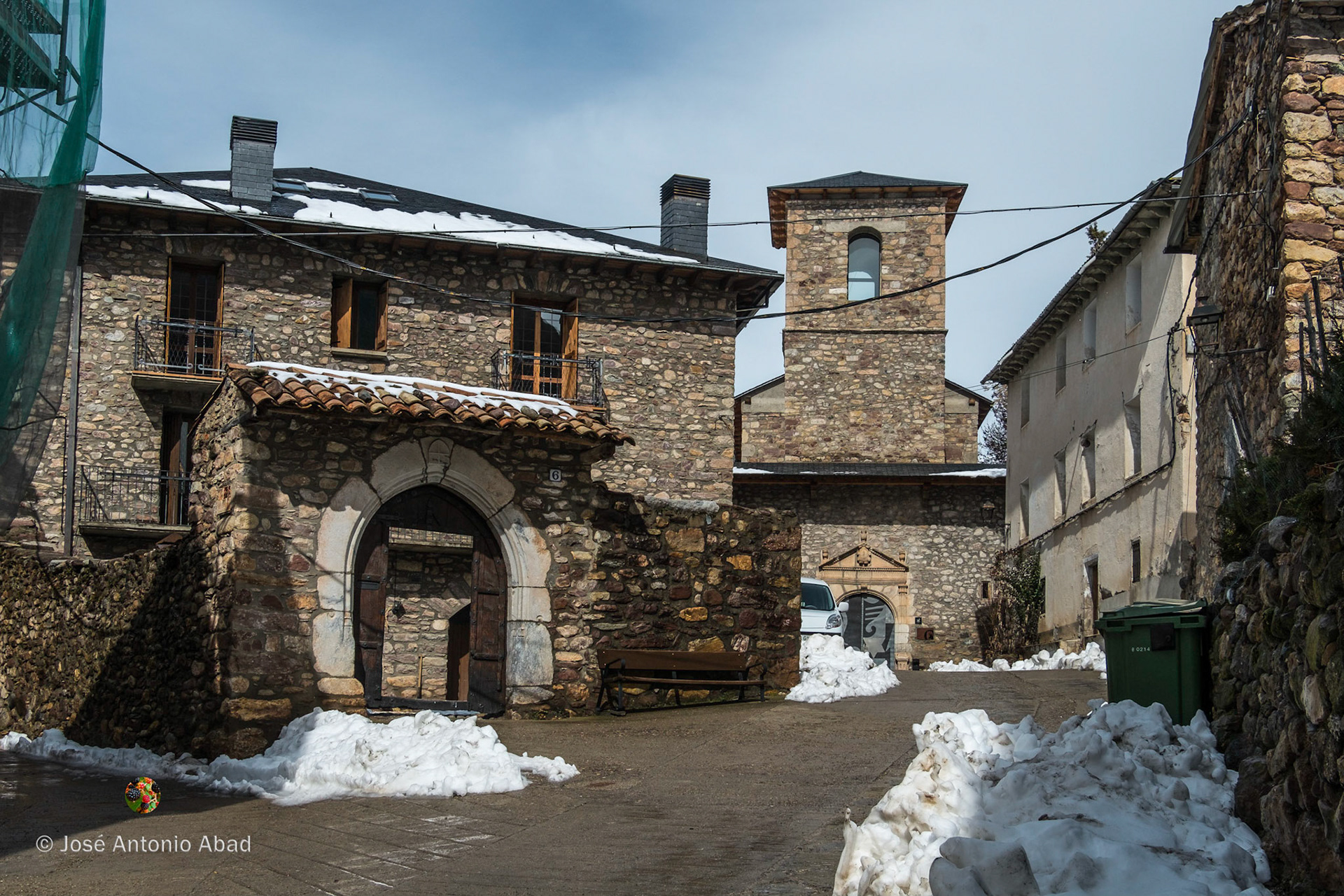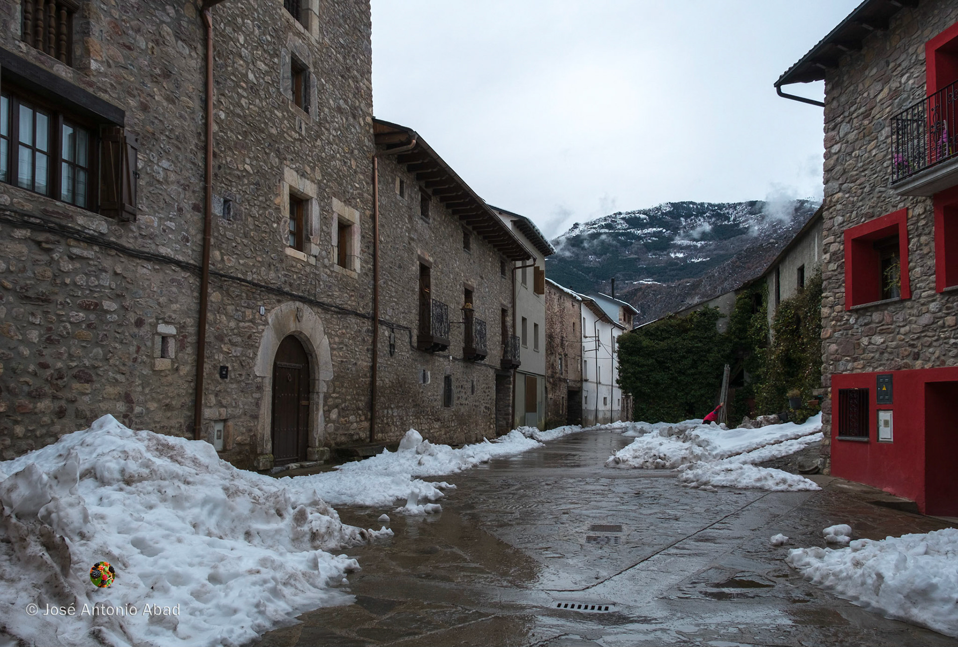 La segunda parada de la ruta fue en Castejón de Sos, donde disfrutamos de un paseo por el pueblo nevado, y ya se nos hizo la hora de comer.