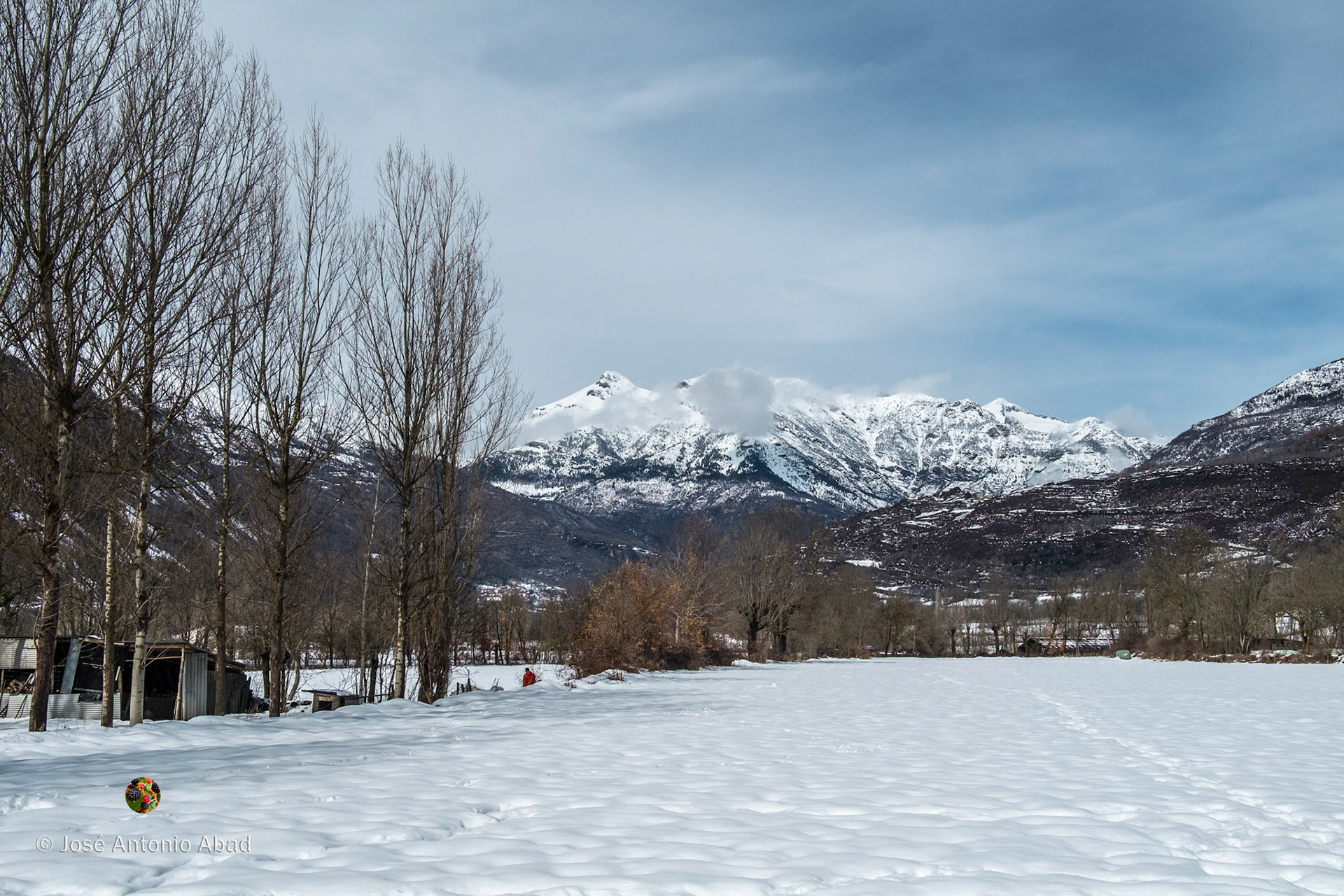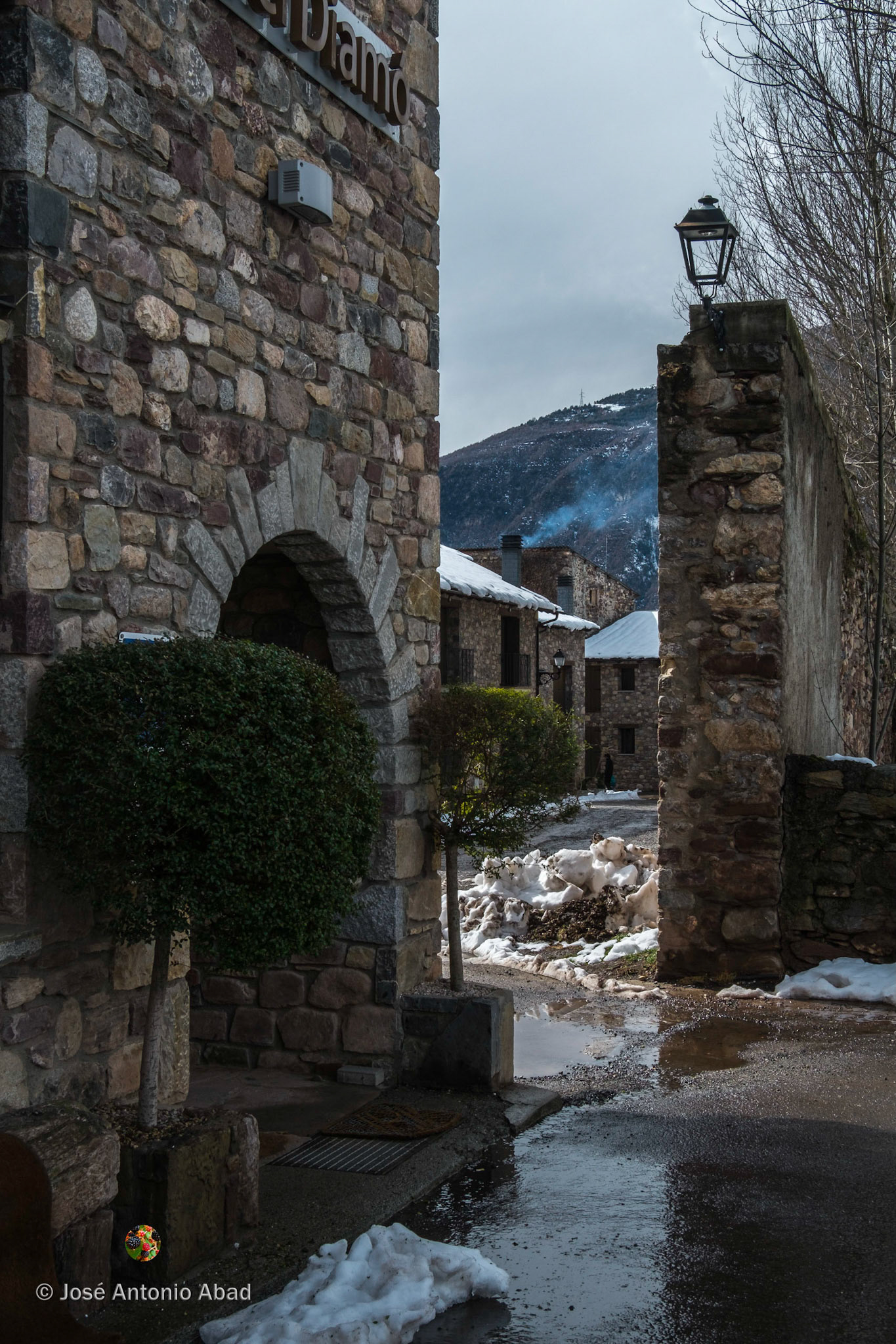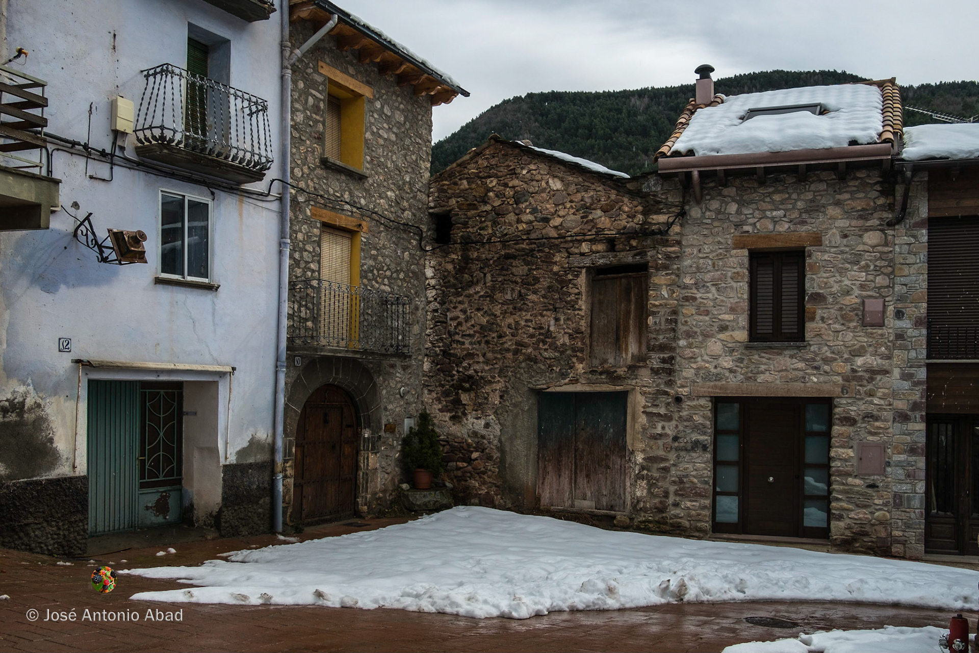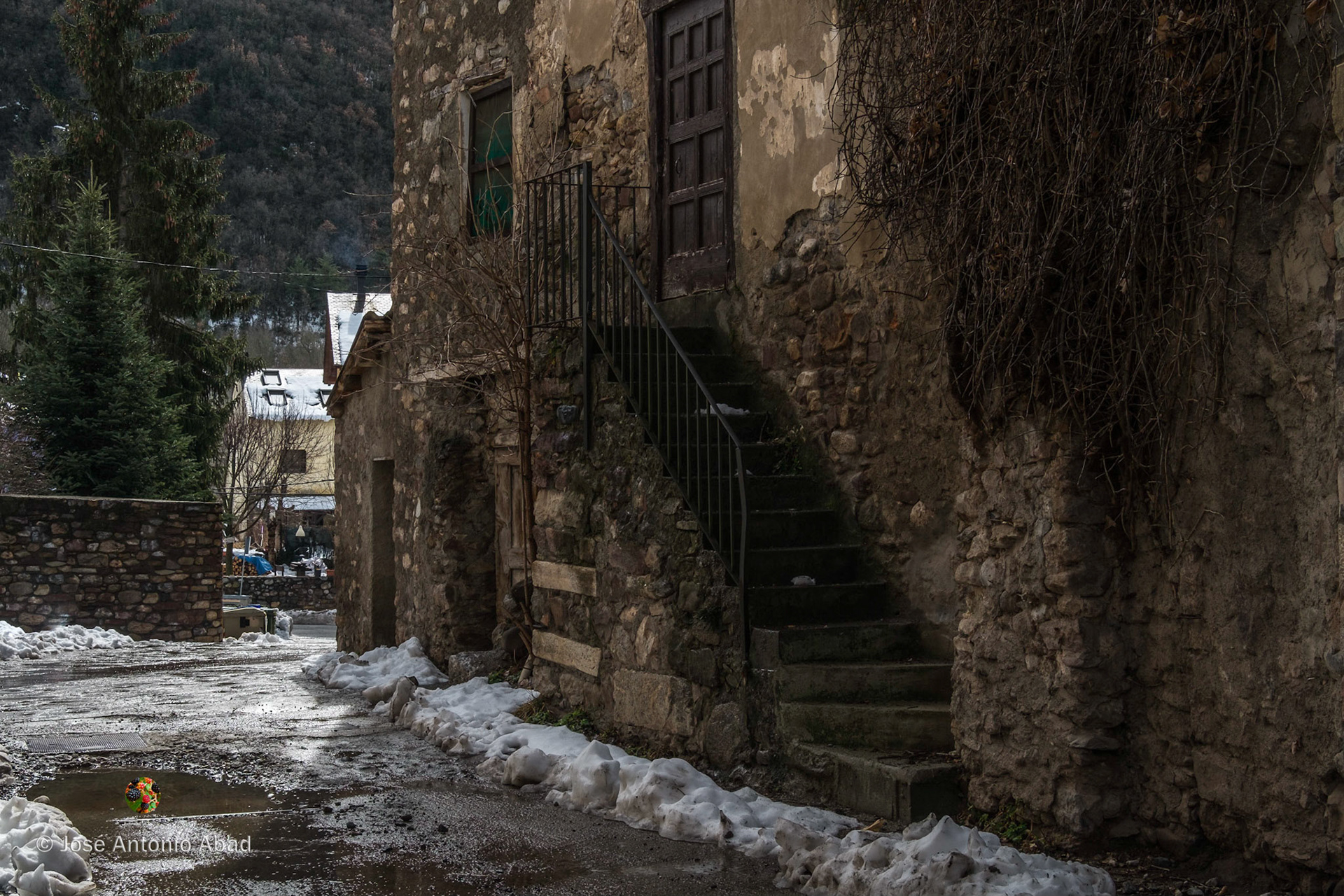 La segunda parada de la ruta fue en Castejón de Sos, donde disfrutamos de un paseo por el pueblo nevado, y ya se nos hizo la hora de comer.