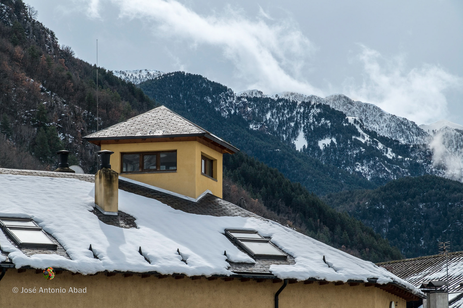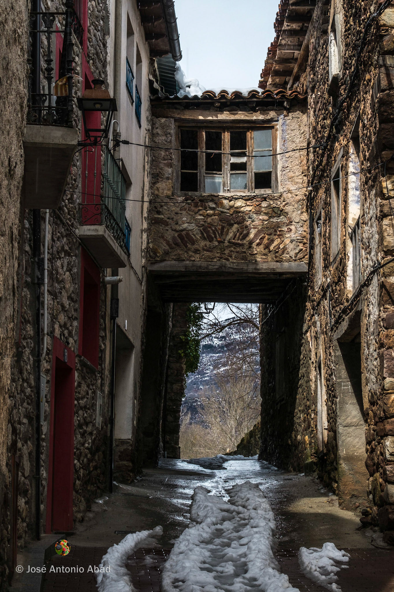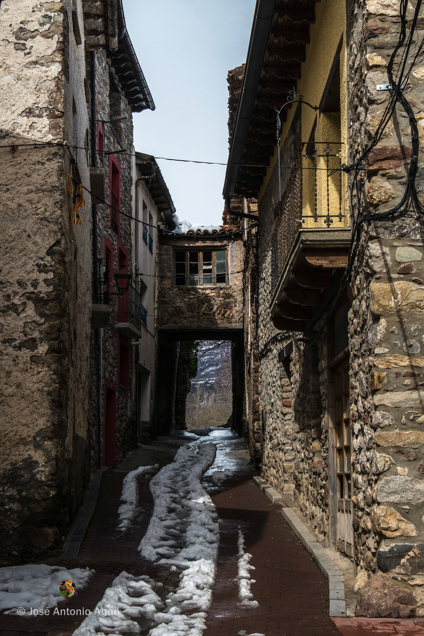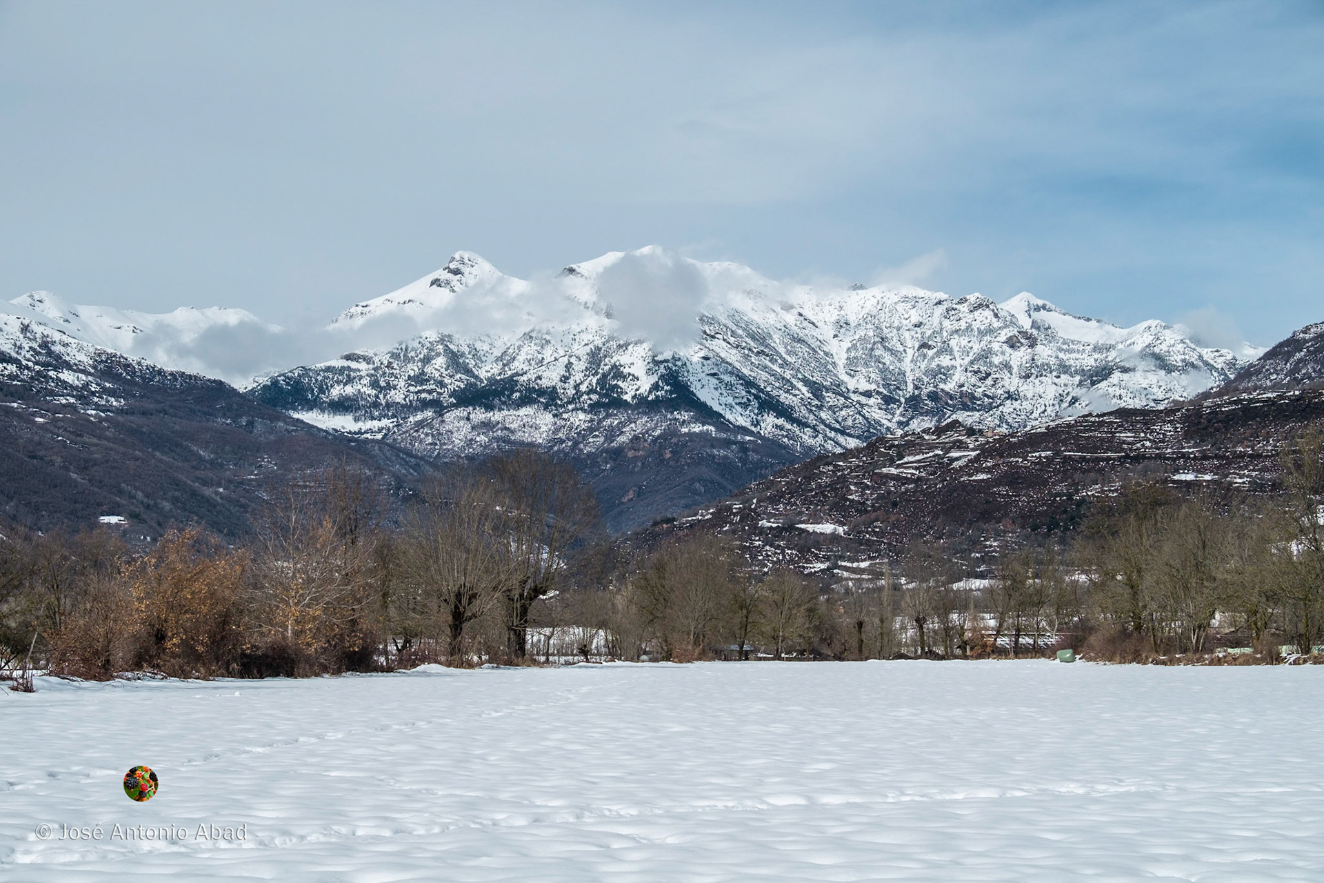 La segunda parada de la ruta fue en Castejón de Sos, donde disfrutamos de un paseo por el pueblo nevado, y ya se nos hizo la hora de comer.
