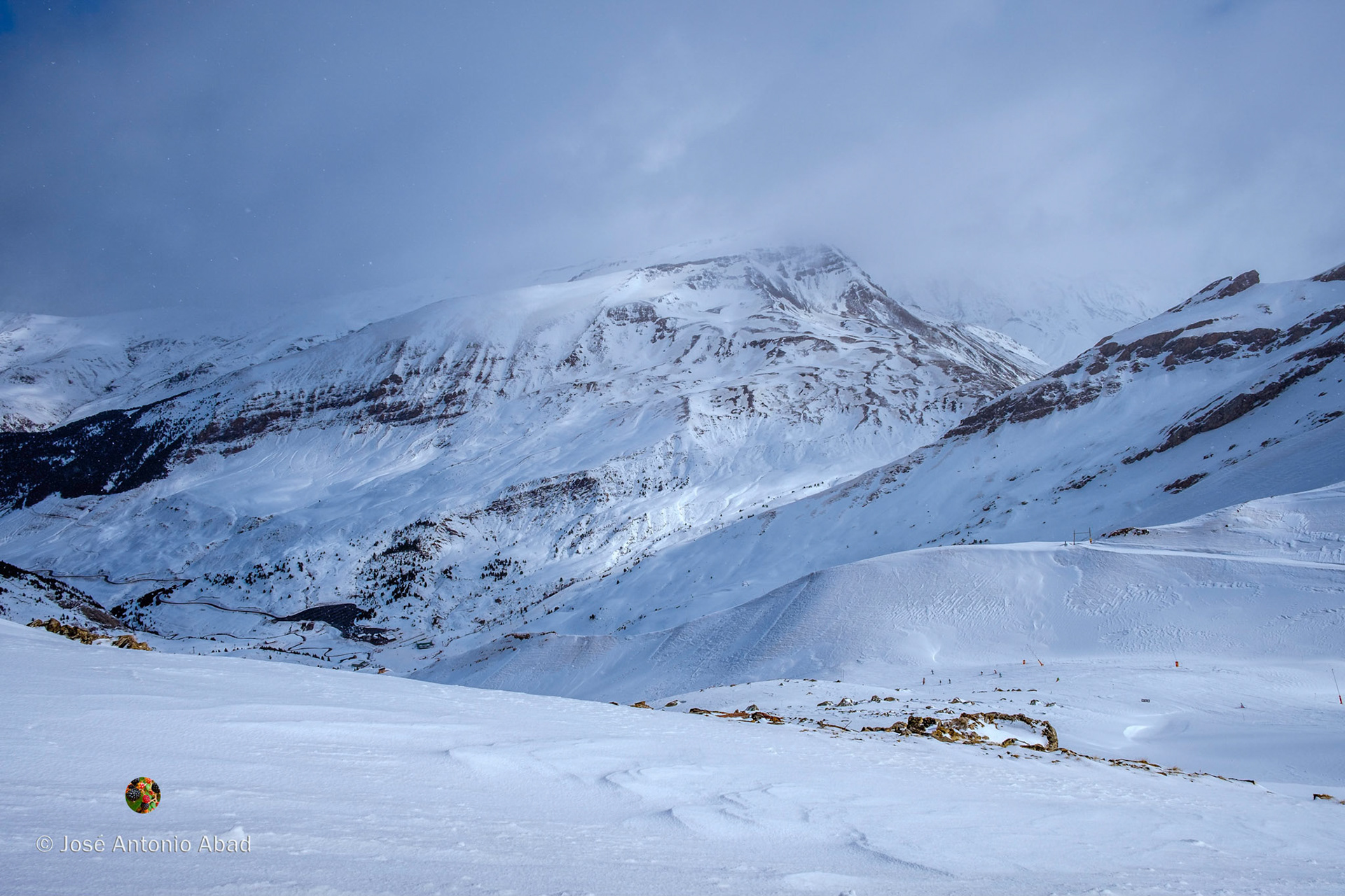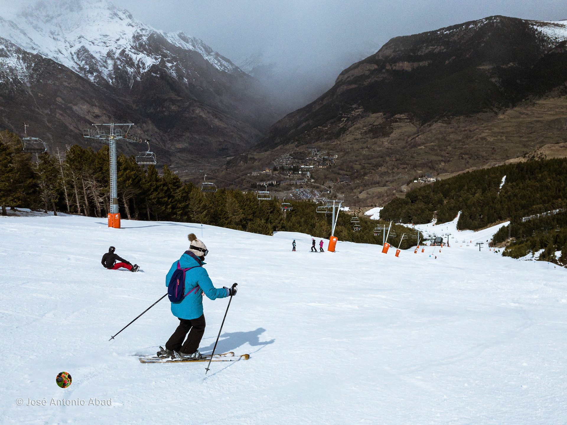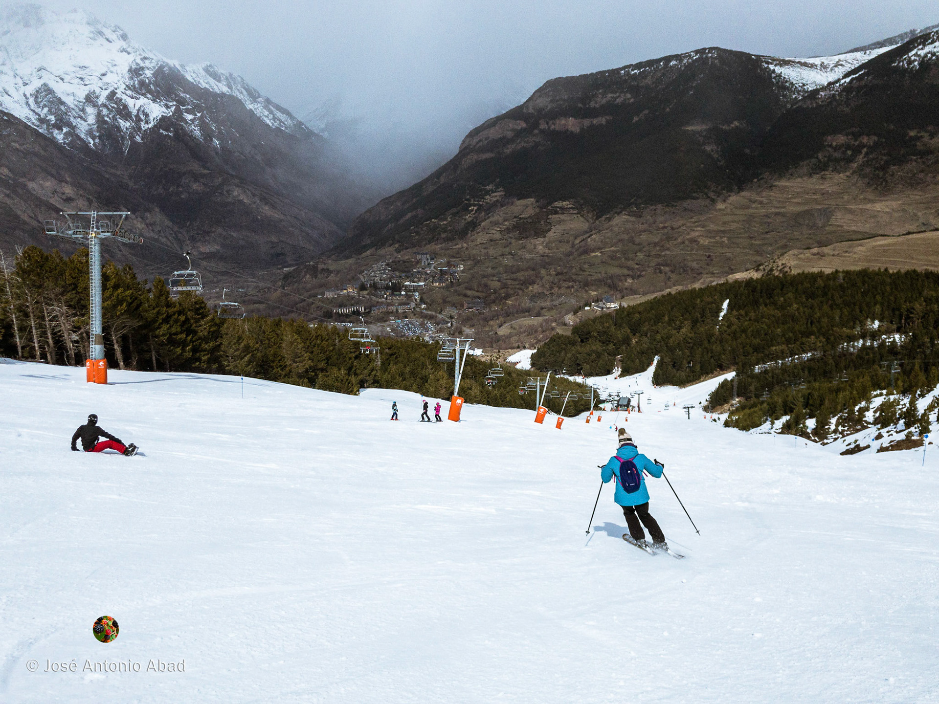 A la tercera va la vencida, al fin disfrutamos de un día de esquí. Comenzó despejado y fue cambiando constantemente, alternando en cada bajada cualquier combinación de nieve, nubes y sol tomadas de dos en dos.