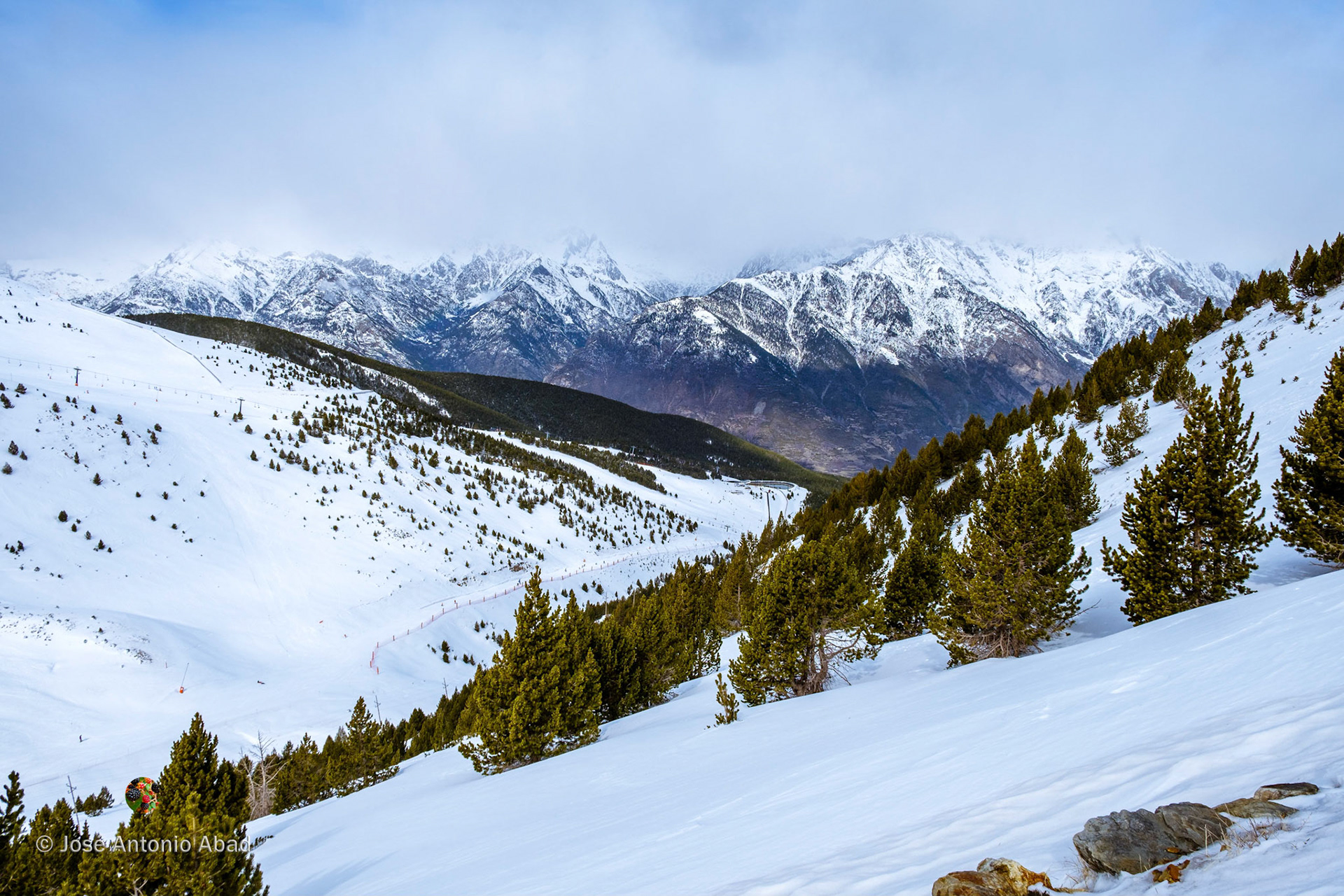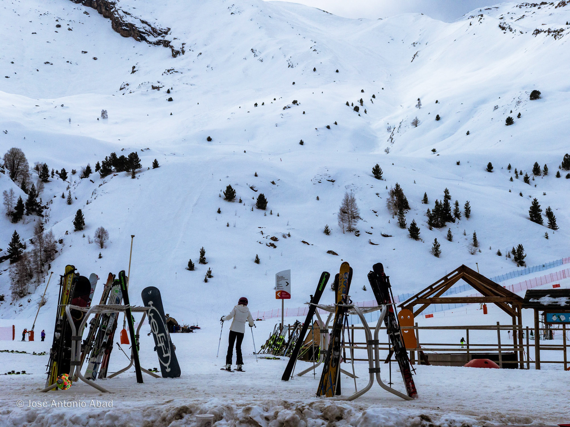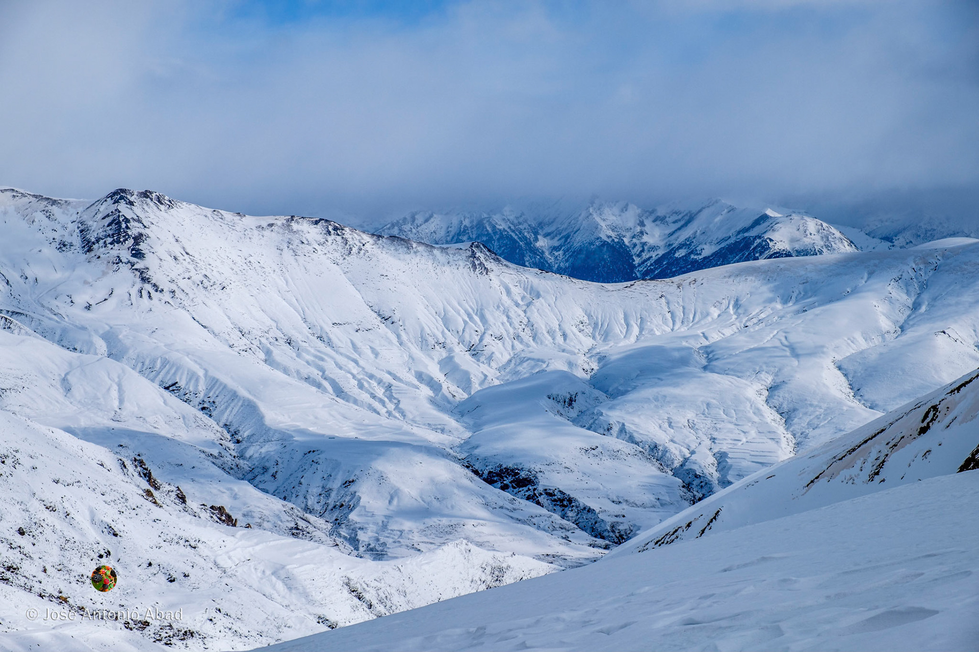 A la tercera va la vencida, al fin disfrutamos de un día de esquí. Comenzó despejado y fue cambiando constantemente, alternando en cada bajada cualquier combinación de nieve, nubes y sol tomadas de dos en dos.