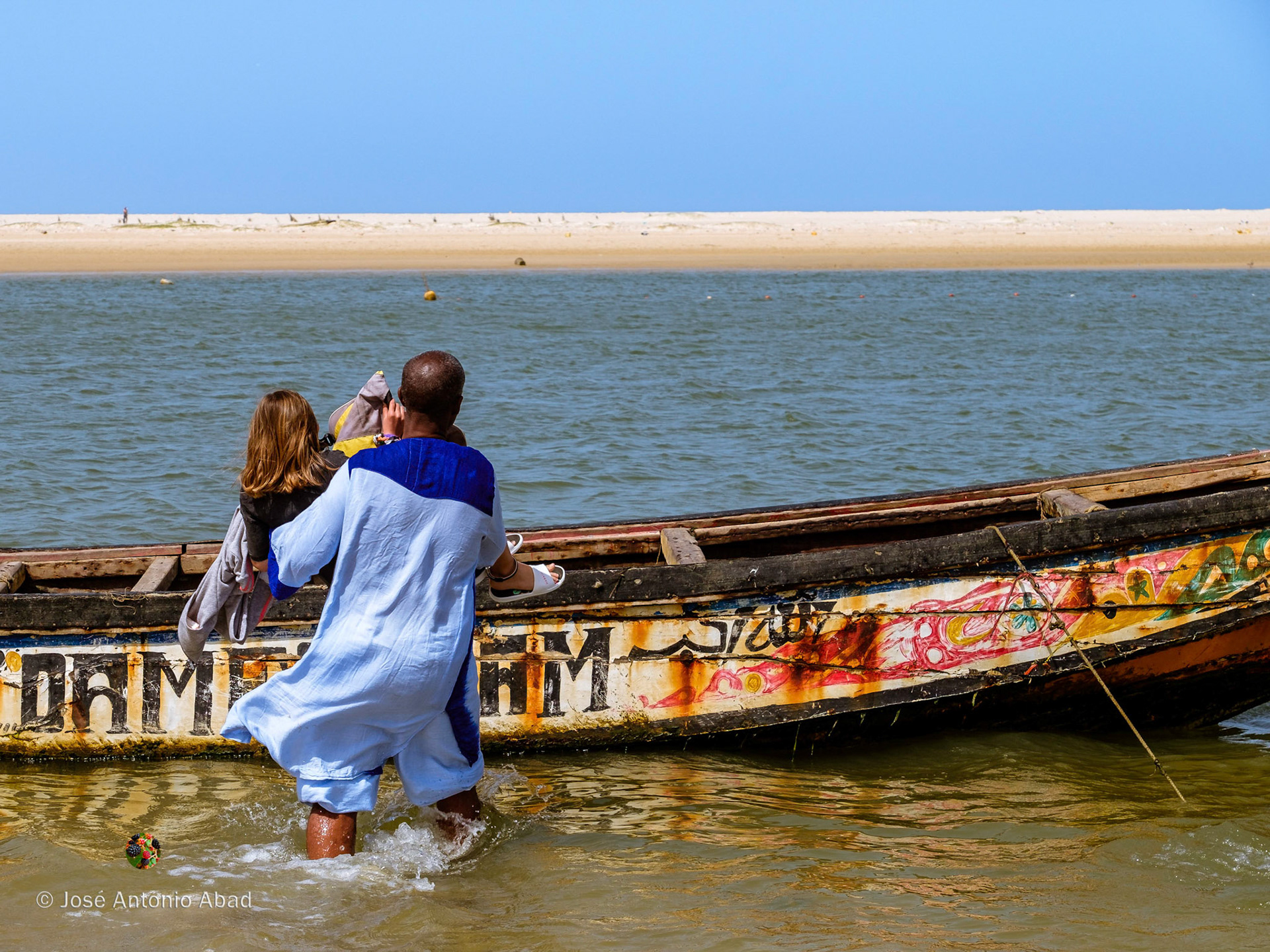 La mañana la dedicamos a dar un paseo en barca por el parque Nacional de la Langue de Barbarie. Se trata de una estrecha lengua de arena paralela a la costa en la desembocadura del río Senegal y que separa las aguas del rio de las del Océano. Faltan adjetivos para describirla, así que mejor veis las fotos.